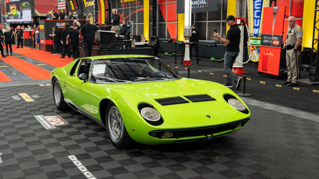 Close behind the Cobra was a 1970 Lamborghini Miura P400, one of just six produced in Verde Miura, at $1,705,500. We saw this Miura in the special display at Mecum Kissimmee just a couple of months ago and it is even more captivating in person.
