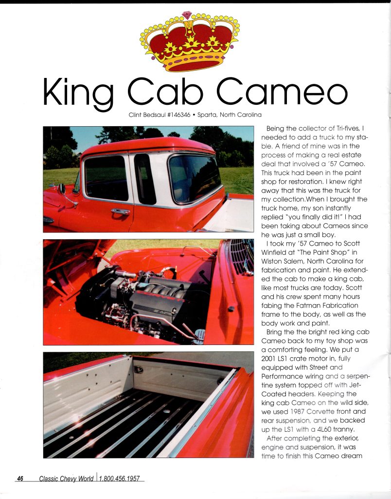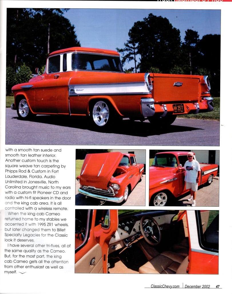 Adding to its appeal, this custom Cameo was also featured in the December 2002 issue of Classic Chevy World magazine, further underscoring the quality and significance of the build.