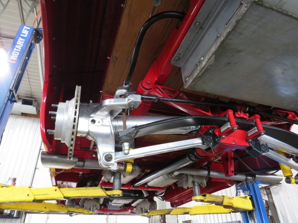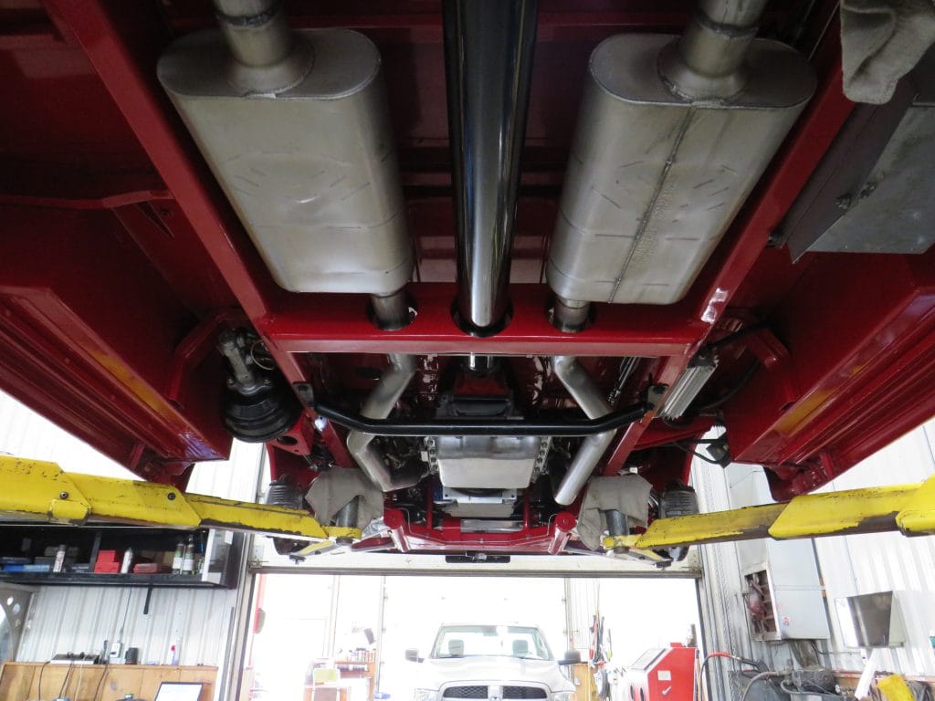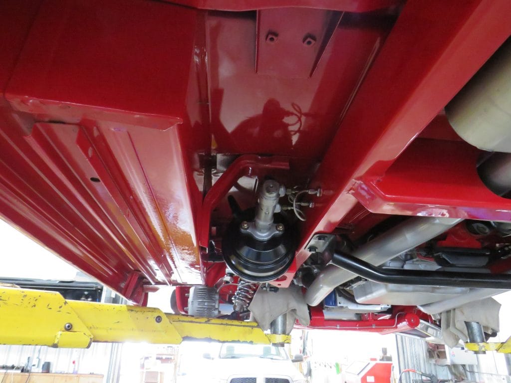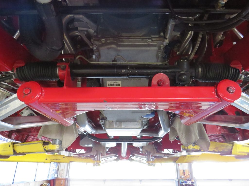 Power comes from a GM LS1 crate V-8 with electronic fuel injection, breathing through Jet-Hot-coated block-hugger headers. Additional highlights include a serpentine front-runner accessory drive, Street & Performance wiring, a 3–speed automatic transmission, and 4-wheel disc brakes.
