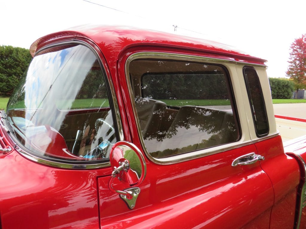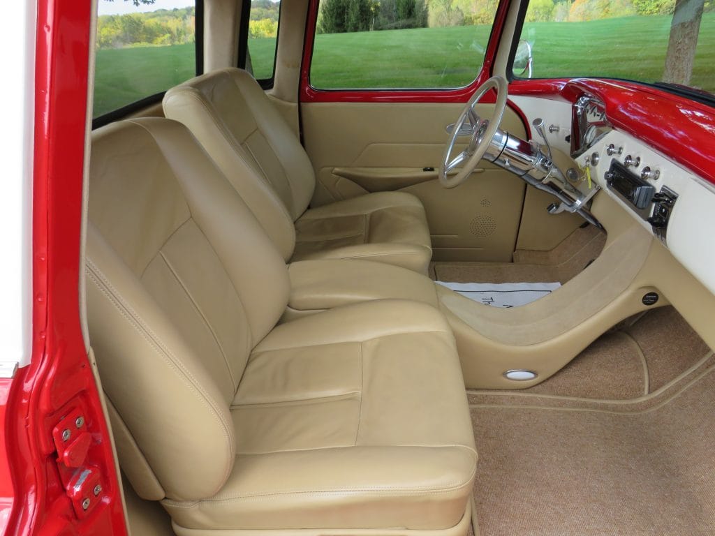 Finished in a classic and attention-grabbing two-tone paint scheme of Red and White, the Cameo’s exterior is complemented by a beautifully tailored Tan leather interior featuring a suede headliner, custom center console, Vintage Air, a Pioneer AM/FM/CD stereo, and a custom rear storage compartment with hidden audio speakers. Recently fitted and handsomely finished oak cargo-bed flooring and Billet Specialties Legacy wheels complete the truck’s visuals.