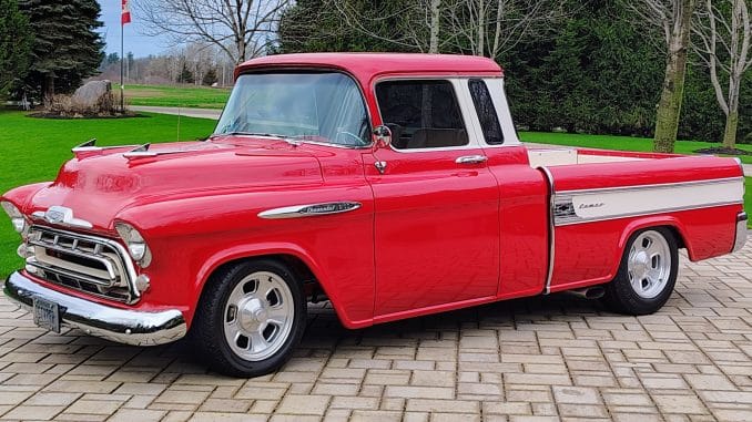 Offered as a Feature entry at Mecum Indy 2026, this striking 1957 Chevrolet Cameo Custom Pickup is set to cross the auction stage on Saturday, May 16, the climactic final day of Mecum’s massive Indianapolis sale at the Indiana State Fairgrounds.
