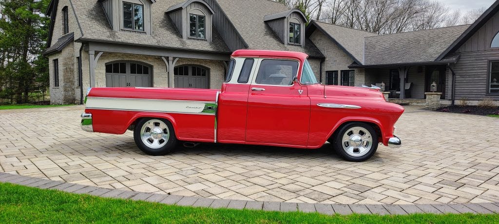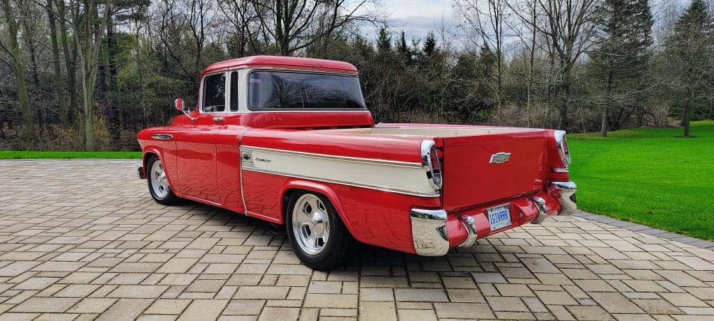 When Chevrolet introduced its all-new “Task Force” trucks for 1955, buyers were treated to something genuinely new: pickups with more style, more comfort, and a distinctly more passenger-car-inspired look and feel. None made a bolder statement than the Chevrolet Cameo Carrier. Introduced in mid-1955, the glamorous Cameo Carrier stood apart with its smooth fiberglass rear fenders, upscale brightwork, elegant two-tone presentation, and a level of styling and sophistication that instantly made conventional stepside pickups seem dated.