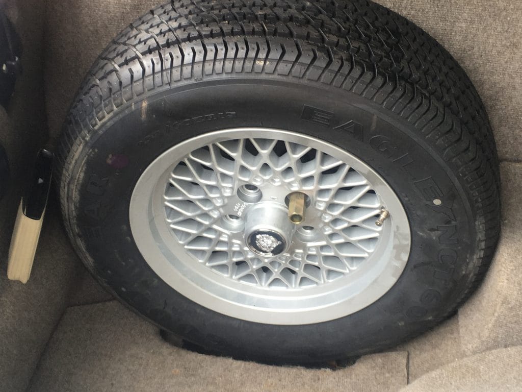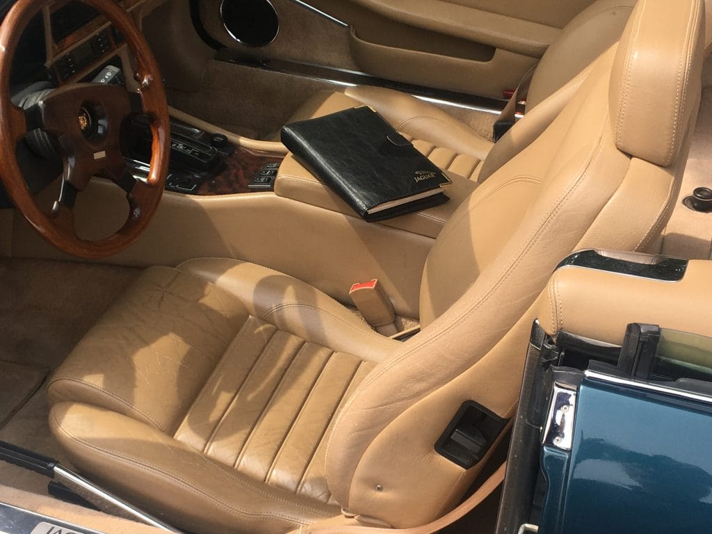 Offered in very nice original condition with just two owners from new – the second since July 1994, this highly attractive ‘Series III’ 1992 Jaguar XJS V-12 Convertible is offered with a reasonable 88,834 kilometers (55,199 miles) at the time we inspected it. Handsome livery includes the Kingfisher Blue exterior over Saddle Connolly leather upholstery. Only driven in good weather and garaged over winters and when not in use, it is rust-free and in very good condition, notwithstanding some small paint chips to the bonnet (hood) from road use and a small dent to the right-front fender. Factory cross-lace alloy wheels are in excellent, damage-free condition, including the covered spare inside the trunk.